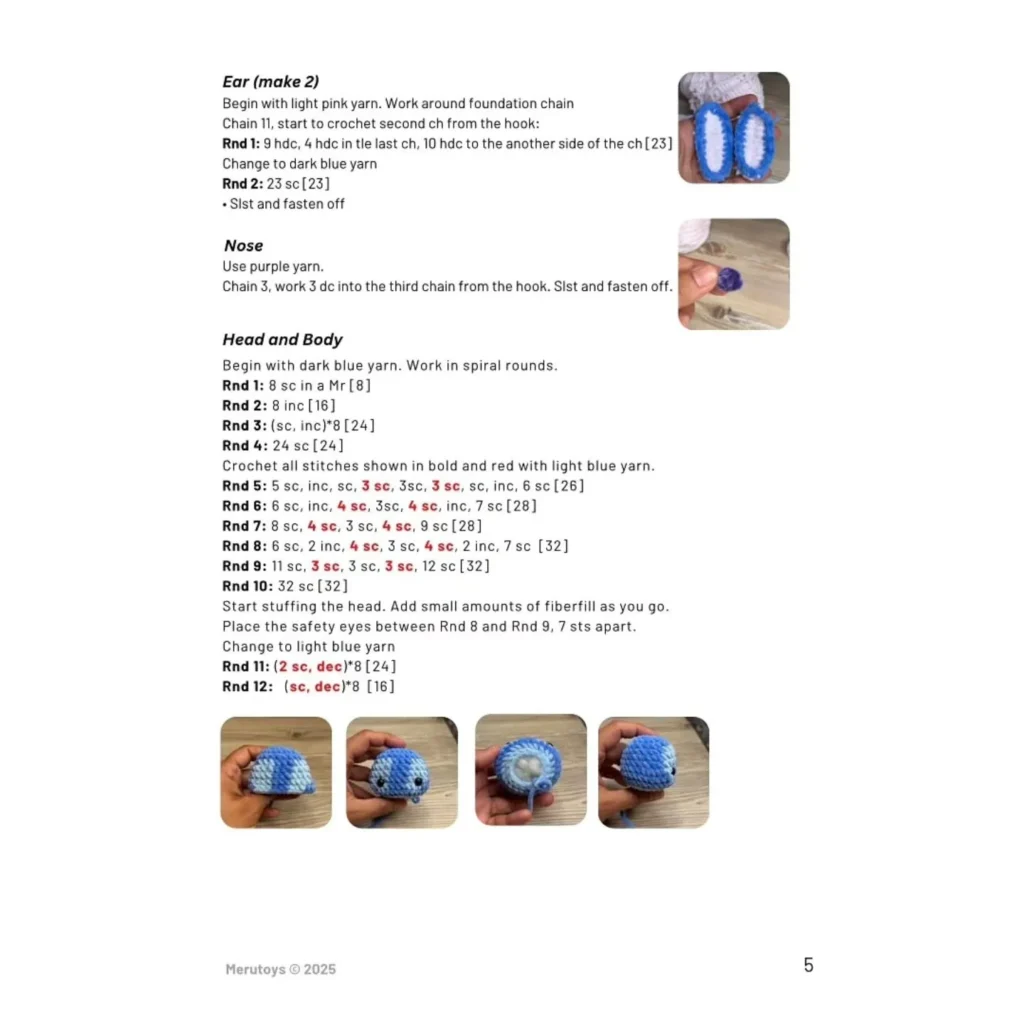 - Sewing Yarn: Small amount of cotton yarn in blue and lilac (for sewing the ears).