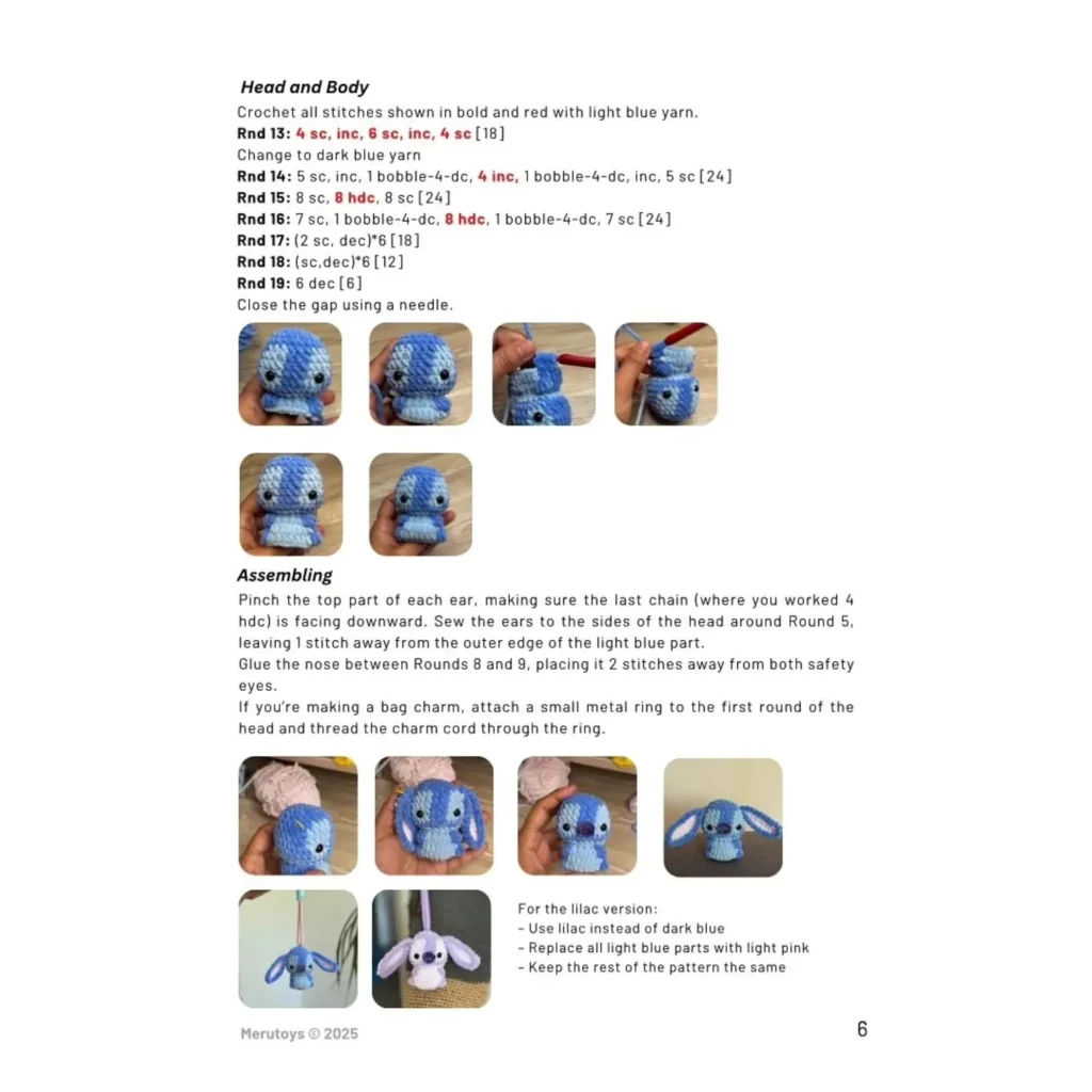 - Bag Charm (Optional): If you’re making a bag charm, attach a small metal ring to the first round of the head and thread the charm cord through the ring.