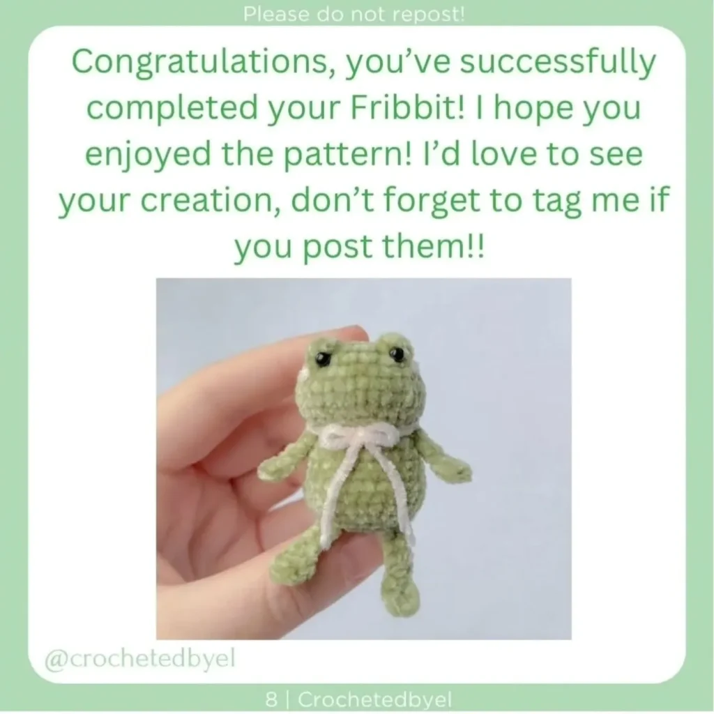 Congratulations on completing your Fribbit! Let me know if you have any questions about the instructions or assembly.